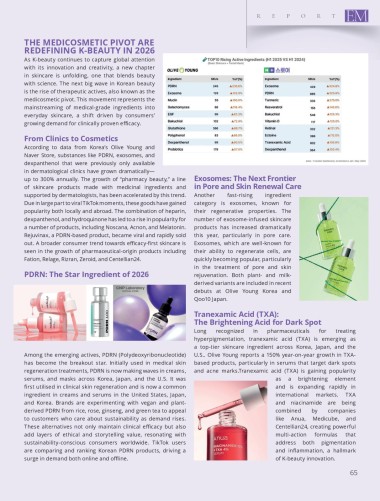 Among the emerging actives, PDRN (Polydeoxyribonucleotide) U.S.. Olive Young reports a 150% year-on-year growth in TXA-