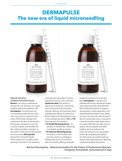 nature and science. Inspired by the Revivre treatments. Dermapulse comes precision, and minimal waste. As part of