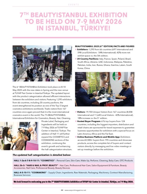 cosmetics event in the world. The 7 h BEAUTYISTANBUL International and 11,645 Local Visitors - 42% International).