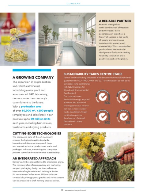 A GROWING COMPANY Kemon’s manufacturing processes meet strict environmental standards,